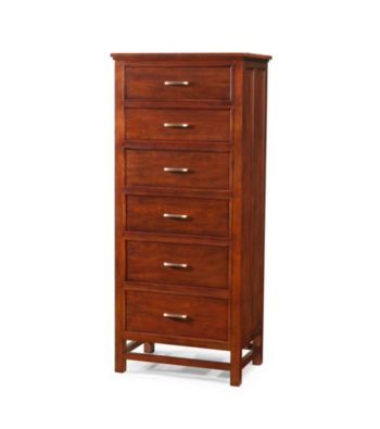 Dressers. Featuring traditional design with a modern touch, keep your intimates and small clothing items organized with this Cresent lingerie chest Enter ZIP code to confirm your address is located within our deliveryarea. If so, you may call with questions or to place an order. If yourfurniture order is placed online, we'll contact you to set up delivery. Organize your intimates and small clothing items in this beautifully crafted Appalachian cherry wood lingerie chest. Finished in a clear cinnamon stain, and polished off with light champagne colored bar pulls, this chest is truly a treat to grace your master bedroom. Each drawer glides on whisper-close slide construction for hassle free access. Finished and stained on all sides, the chest is designed for floating room placement, allowing a creative floor plan. A total of six spacious drawers will never leave you searching for additional bedroom storage. Crafted with sustainably-forested Appalachian cherry wood Rich, warm brown cherry finish 26"W x 18"D x 60"H Six spacious drawers Designed for floating room placement Each drawer glides on whisper-close slide construction One-year manufacturer's warranty Imported
